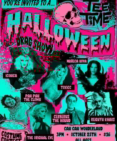 Come experience a spook-tacular Halloween themed drag show featuring Iconica, Toxicc, Muneca, PanPan, Cerberus, Reignyn, and Eve