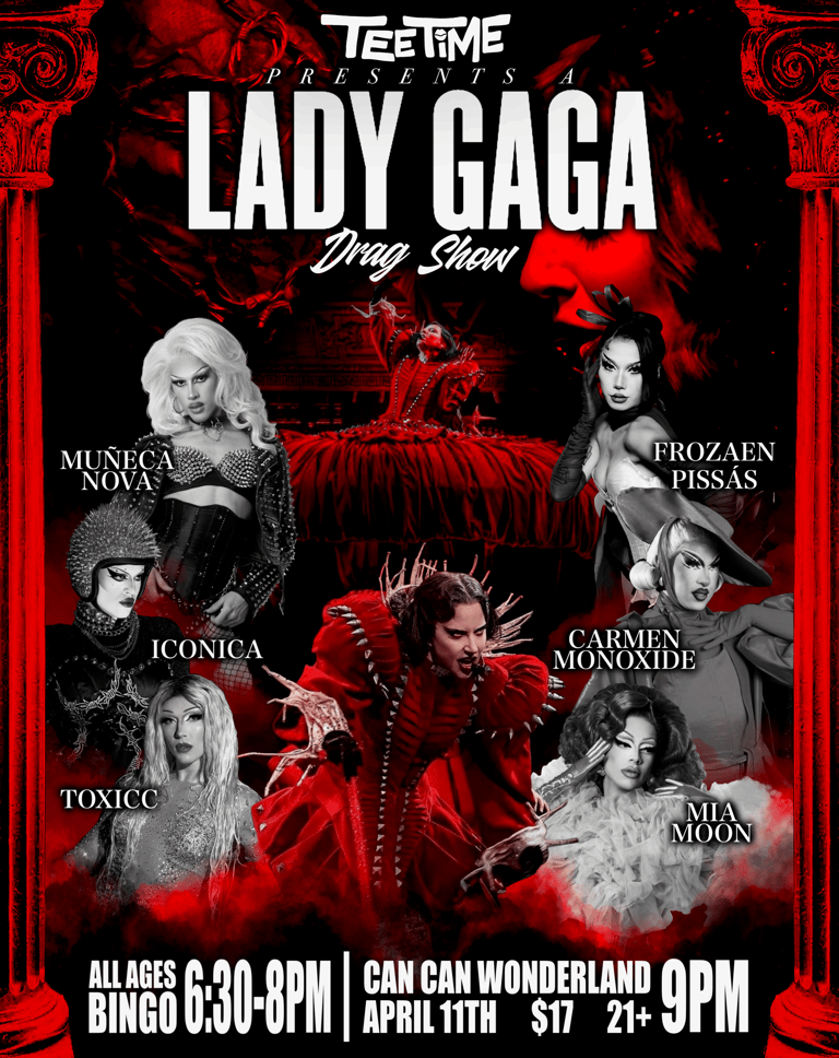 Join us for Lady Gaga themed Bingo at 6:30 and Lady Gaga themed drag show at 9pm